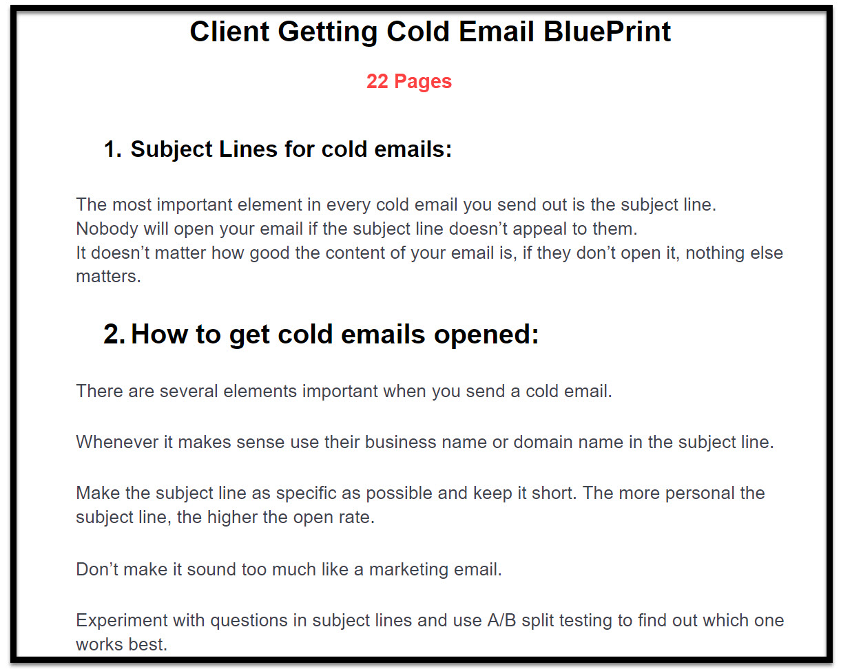 Bonus 3: Client Getting Cold Email BluePrint With Done For You Proven Client Getting Subject Lines and Email Templates. (22 Pages)